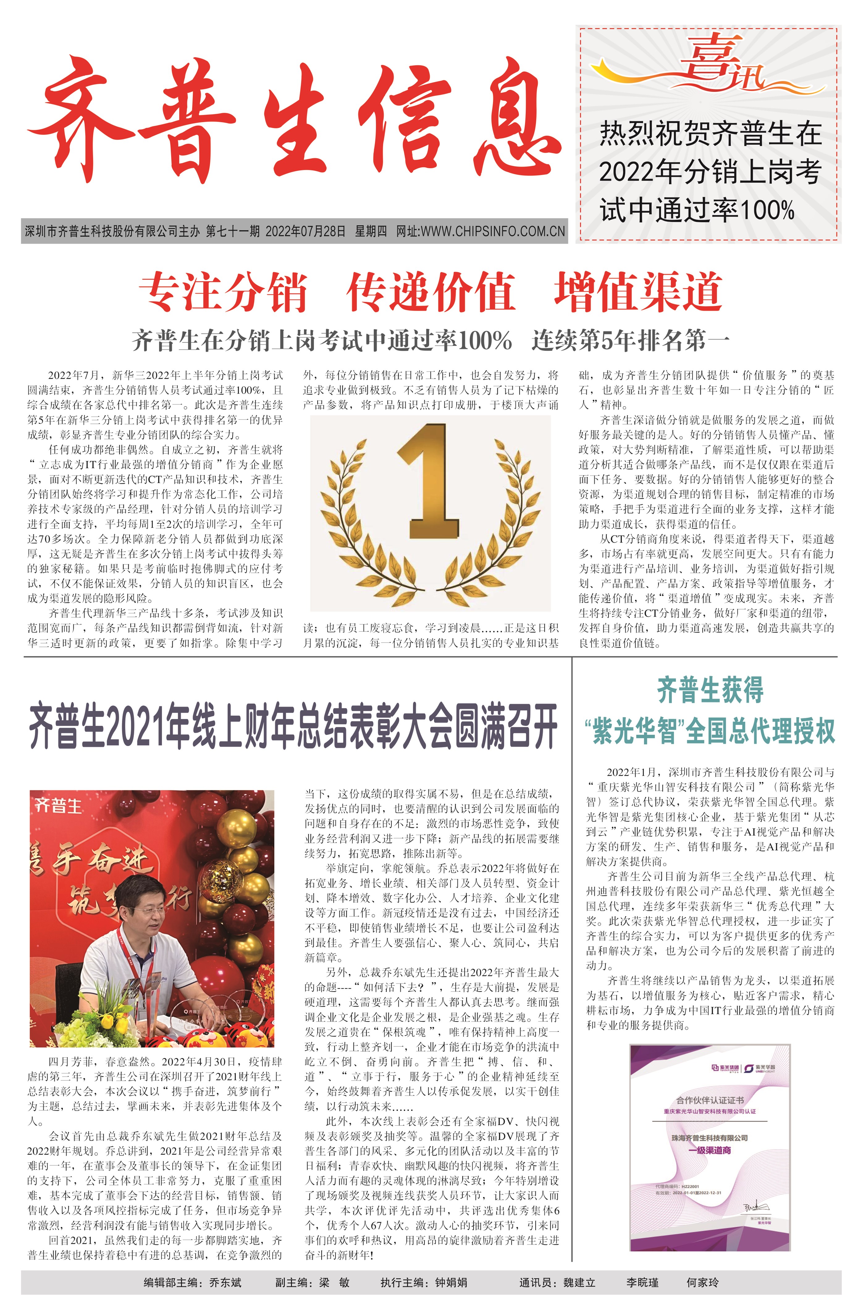 齊普生獲得“紫光華智”全國總代理授權(quán)