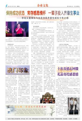 保持成功狀態(tài) 常存感恩情懷 一輩子投入齊普生事業(yè) ——李結(jié)義董事長(zhǎng)與全員分享齊普生成長(zhǎng)十年之感