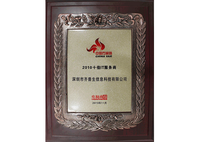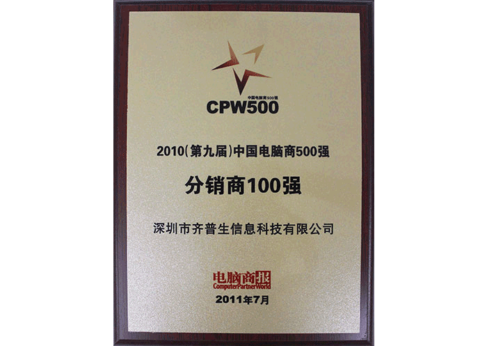 2010年電腦商500強分銷商100強并獲“最佳IaaS方案服務提供商”